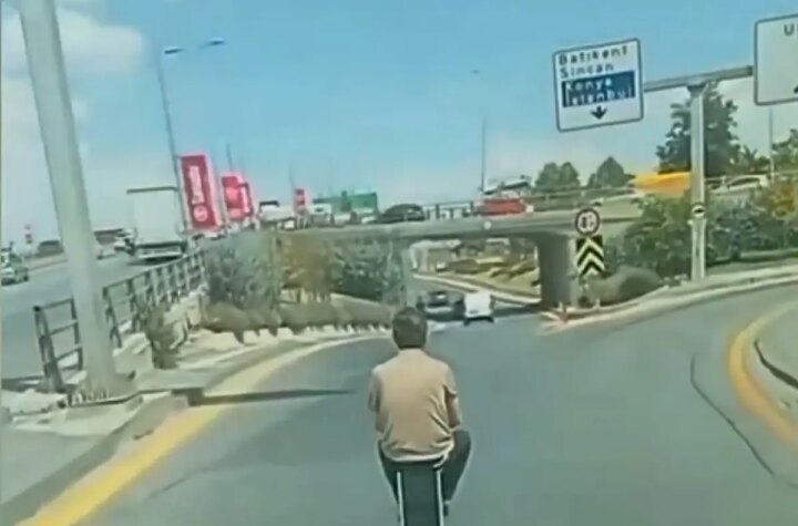 Ankara'da yolda giden bir motosikletli, yolun ortasında aracını durdurarak uyuyan bir şahısla karşılaştı. Motosikletli...