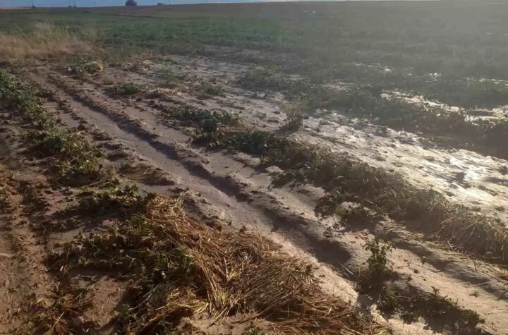 Ankara'nın Beypazarı ilçesinde meydana gelen sağanak yağış sonrası ekili yerler büyük ziyan gördü. Mahsuller...