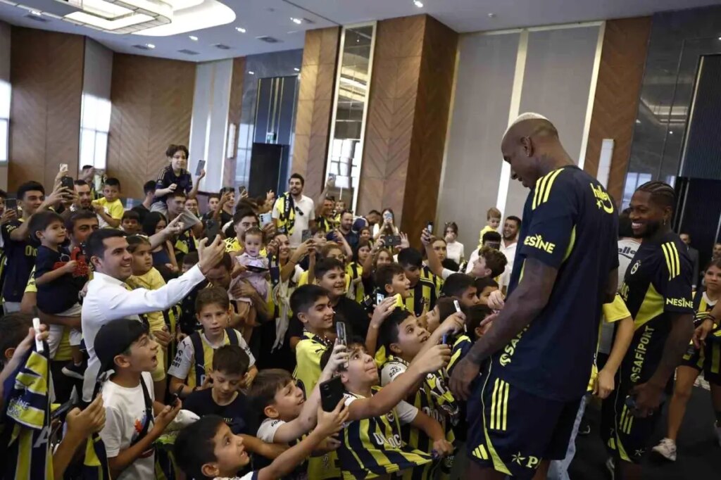 Fenerbahçe’nin kamp yaptığı otelde gerçekleştirilen tertibe çocuk taraftarlar ağır ilgi gösterdi. Küçük taraftarlarla yakından ilgilenen futbolcular, çocukların formalarını imzaladı.