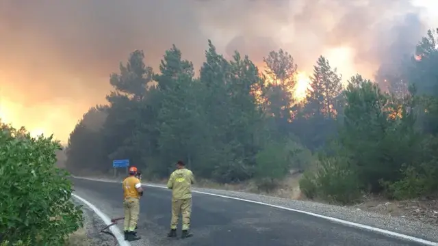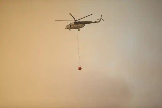 Ekiplerin gece uzunluğu karadan yürüttüğü çalışmalara günün ağarmasıyla helikopterlerle dayanak verilmeye başlandı. Alevlere 39 araç, 3 helikopter, 5 su tankeri, 17 arazöz, 3 birinci müdahale aracı ve 182 işçiyle müdahale ediliyor.