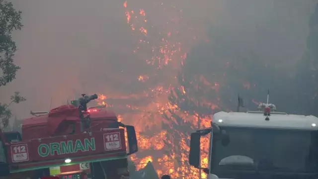 Havanın kararmasıyla havadan müdahaleye orta verildi. Yer takımları, yangını denetim altına almak için çalışmalarına devam ediyor.