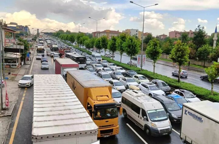 Ankara'da ansızın tesirli olan sağanak yağış, Fatih Sultan Mehmet Bulvarı'nda trafik aksamasına sebep oldu....