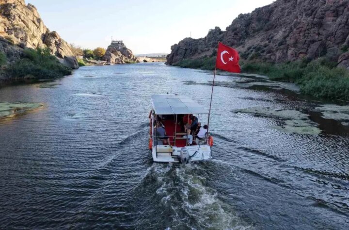 Kırıkkale'deki tarihi Çeşnigir Köprüsü, Kızılırmak üzerindeki tekne cinsleriyle ziyaretçilerin ilgisini çekiyor. Bozkır görüntüsü eşliğinde...